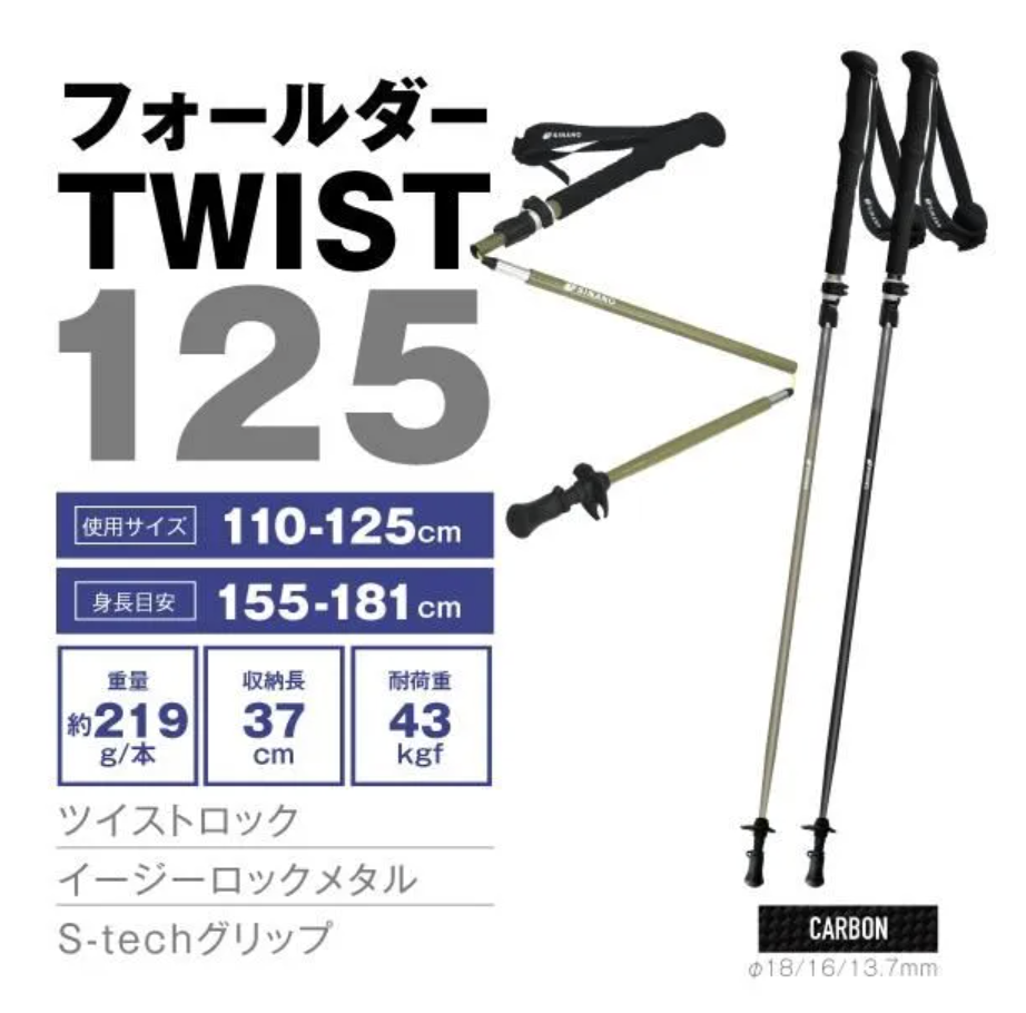 | フォールダーTWIST 125 | 110〜125cm | I型 | カーボン | 折りたたみ式 |