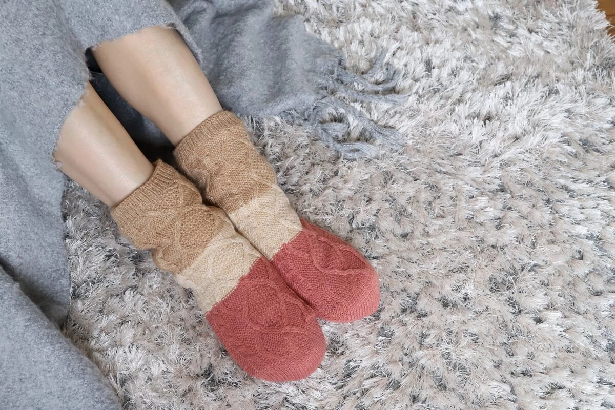 ルームシューズは室内で着用するアイテムで、冷えやすいフローリングなどを歩くときに着用することで、床からの寒さを軽減できます。また、落ちているものを踏んでも足の裏を怪我しにくかったり、足音によるトラブルを回避しやすかったりする点もメリットです。