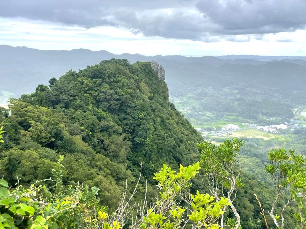展望台を越えると、ついに岩場の登山道です。ロープや鎖を頼りに巨大な岩場を登り切ると南峰山頂に到着。柵のある岩場が頂上となる南峰では360°を見渡せる開放感たっぷりの絶景が広がっています。北峰山頂からは西側の眺めがすばらしく周囲の美しい山並みを堪能することができます。
