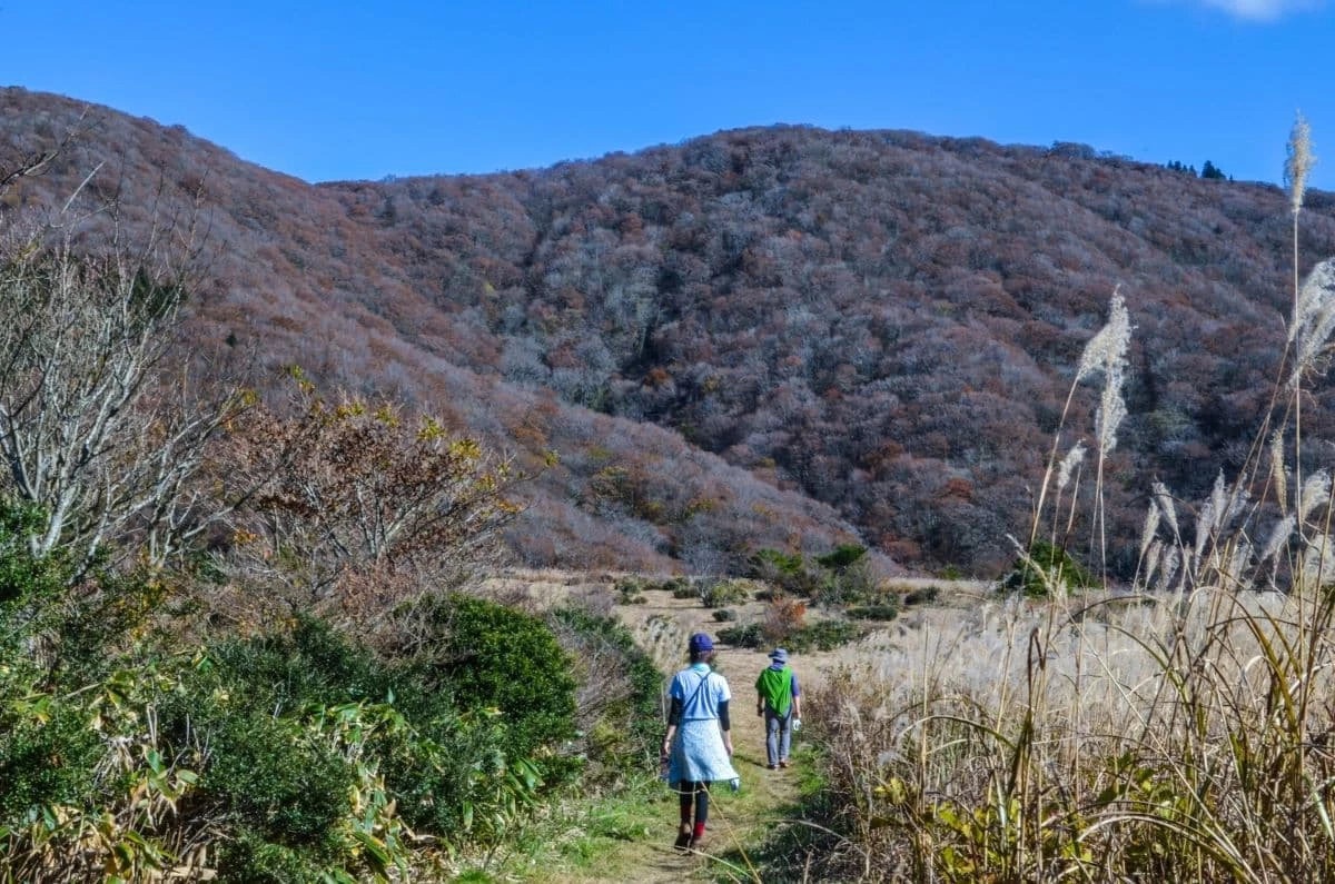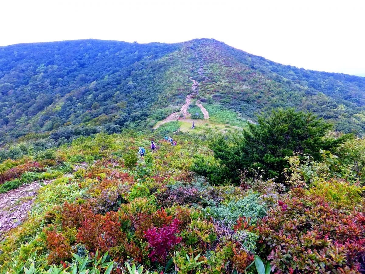 広大な天然芝の草原とブナの原生林が特徴的な山であり、その他にも四季折々のたくさんの草花と出会うことができます。初心者や子ども連れのファミリーでも気軽に登ることができるハイキングスポットとして人気です。