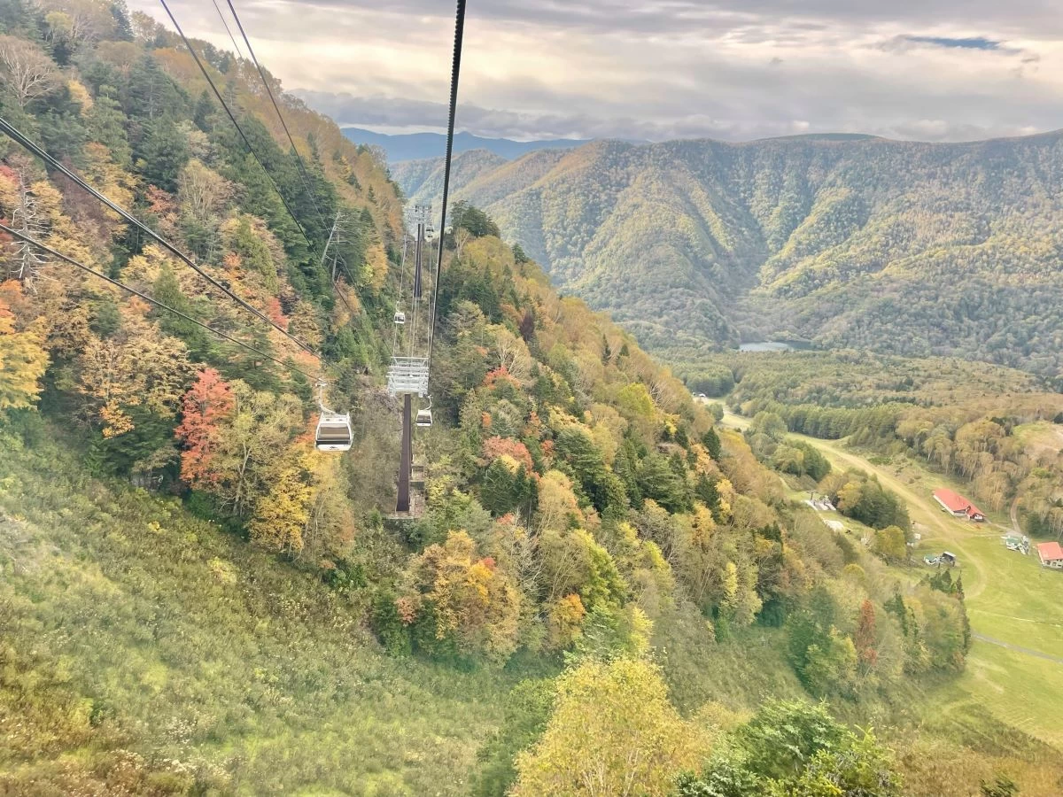 茶臼岳の見どころは、山頂からの360度絶景パノラマビューです。日本山歩きクエストが登ったのは5月上旬だったので、雪を頂く雄大な山々の景色を堪能できました。秋なら色とりどりの紅葉を楽しめるでしょう。また、ロープウェイで下山する際も、上空から高山植物が自生する山の姿を拝めます。