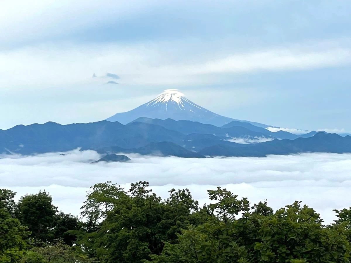 陣馬山のおすすめポイントは、富士見百景にも選ばれている山頂からの眺望です。丹沢や奥多摩の山々、神奈川や東京の街並みを一望できる他、雲海の上にそびえる富士山の姿を拝めます。晴れている日はもちろんですが、多少曇っていてもその姿をはっきり目にすることができました。