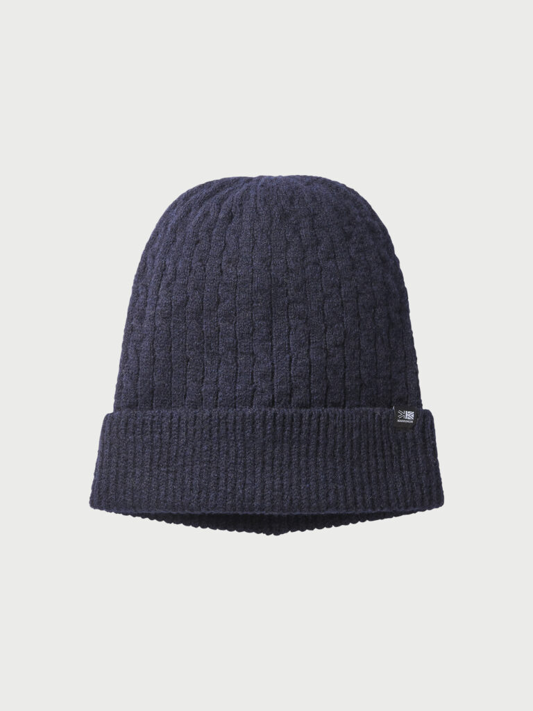 細かいケーブル編みで立体感と厚みを持たせ、空気を多く蓄えて高い保温性を実現。寒冷地の登山でも頭部をしっかり守ります。