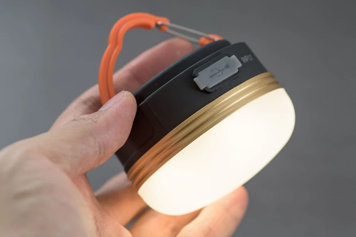 軽さにこだわるなら、乾電池込み84gのUCOの「スプラウト+」がおすすめです。小型ながら2つの点灯方式と、耐水性も備えています。また、USB充電ならポータブルバッテリーからの充電も可能です。ストラップは磁石で着脱可能。虫が寄り付きにくい青系の明かりにも切り替えられます。