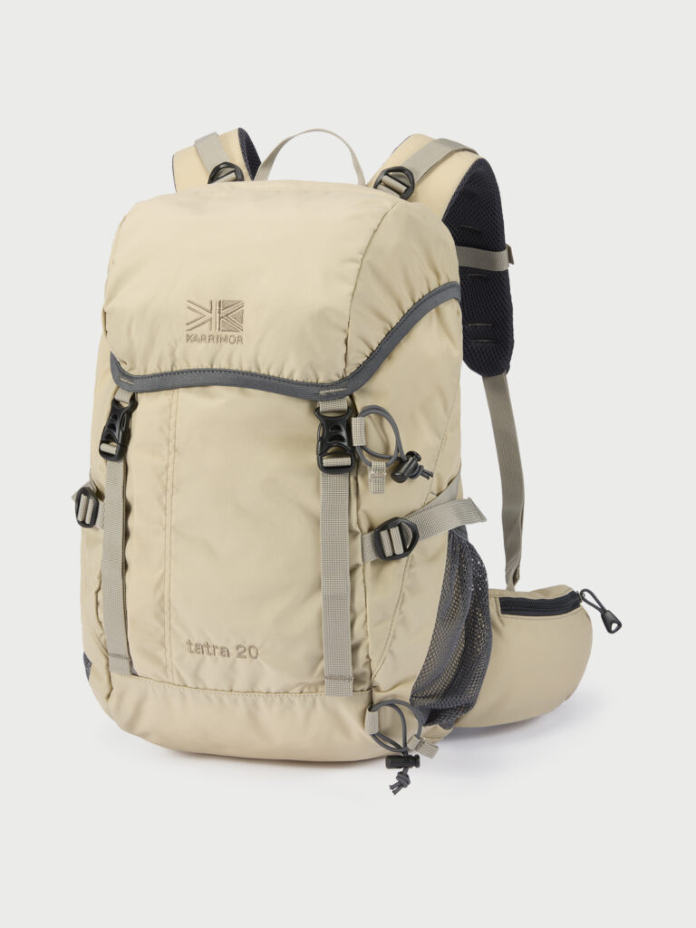 カリマーの「tatra20」は、コンパクトでありながら、さまざまな装備を搭載した多機能の登山リュックです。パッド入りヒップベルトやフロント部、雨蓋にはそれぞれポケットを装備しており、登山に必要な小物を小分けにして収納することが可能です。