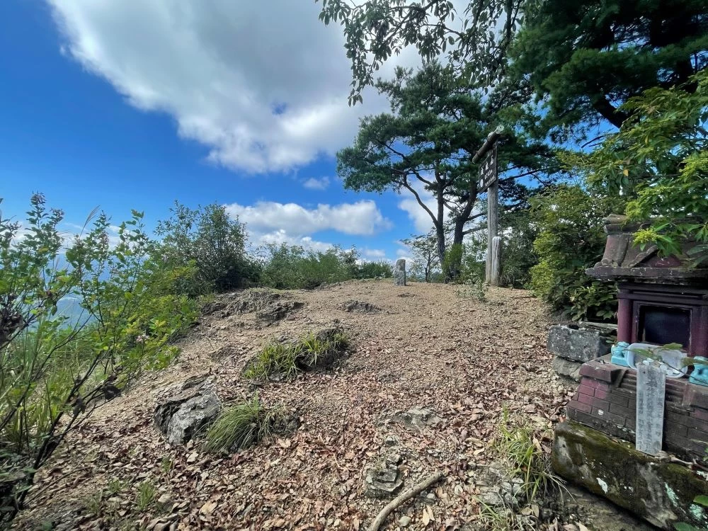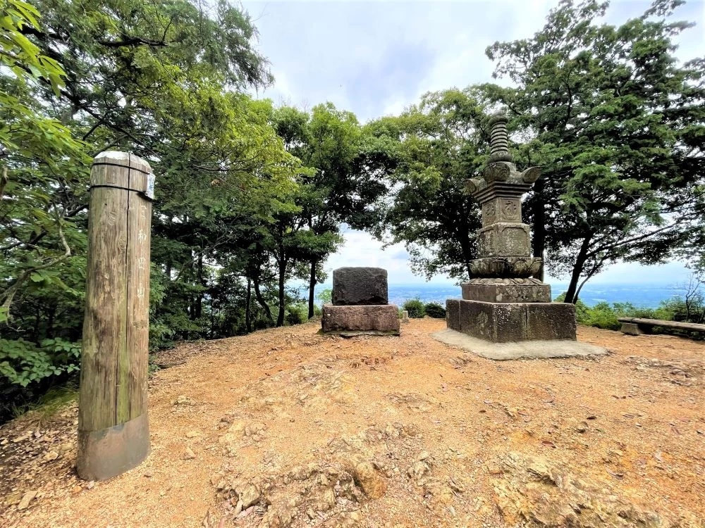 社殿からすぐに到達できる山頂からは、日高や越生方面の景色を臨めます。宝篋院塔の近くには休憩用のベンチもあり、一休みしてから下山できます。