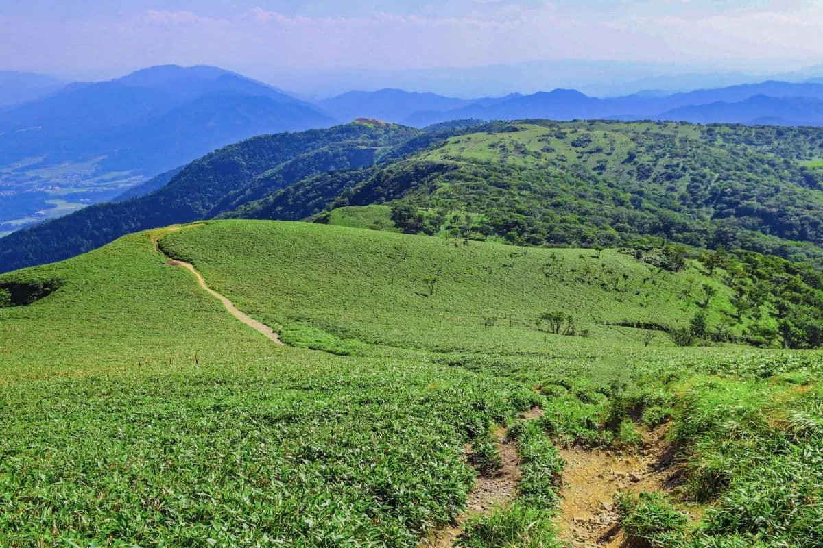 山容は比較的なだらかで、登山道も整備されているため歩きやすくなっています。そのため、初心者やファミリーに人気があります。また、多くの登山道が整備されているため、何度訪れてもたのしい山です。山頂からは360度にひらけた絶景パノラマビューを眺めることができ、この景色をひと目見ようと多くの登山客が訪れます。
