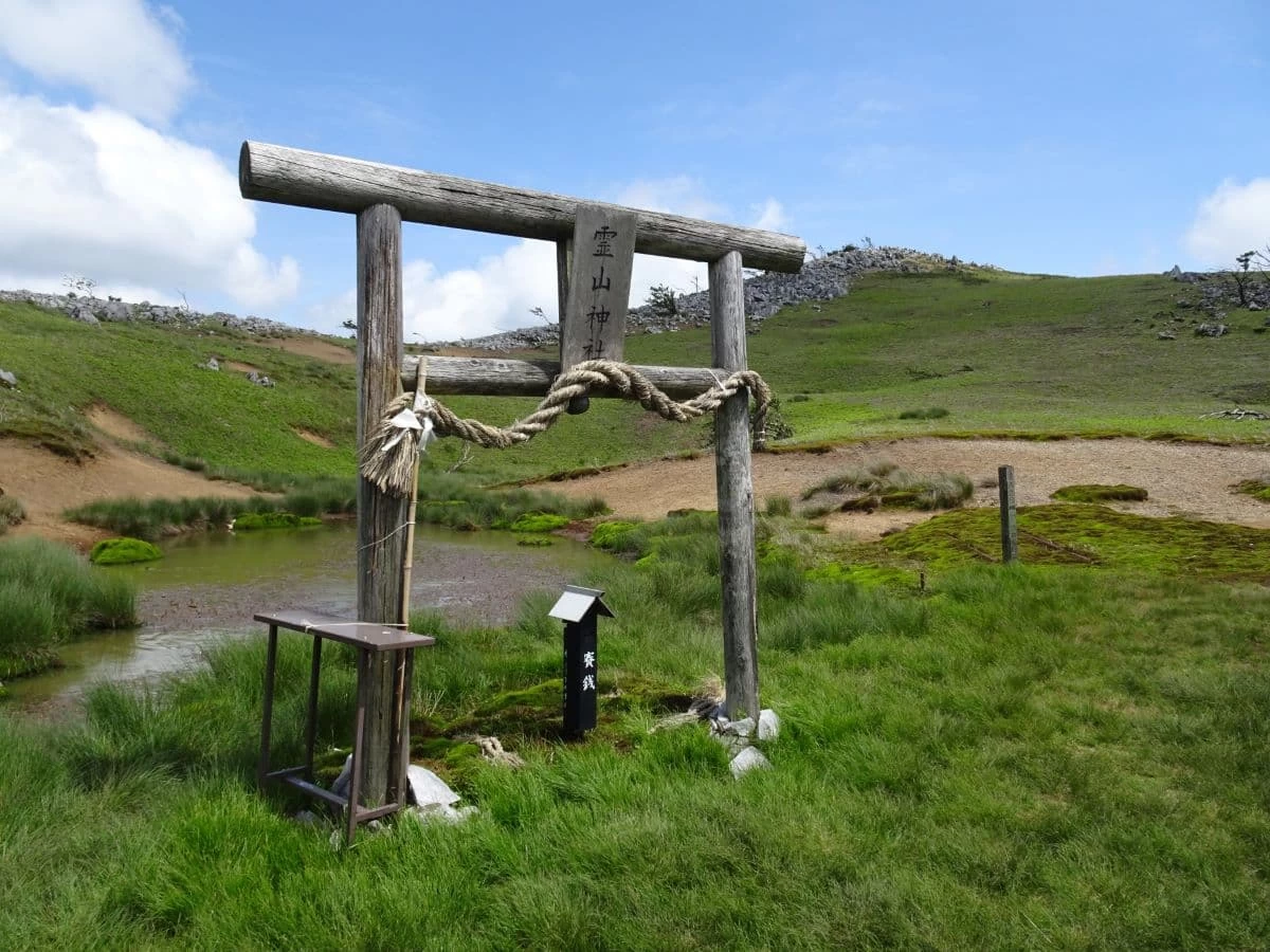 山頂からは琵琶湖を一望するすばらしい絶景をながめることができるため、多くの登山客や観光客が訪れます。また、古来より蓬萊山は修験道の霊山として知られ、山頂には「比良大神奥宮社(ひらのおおみかみおくぐうしゃ)」が鎮座しています。山頂の南側は草原が広がり、北側には積雪が多いためスキー場が整備されています。