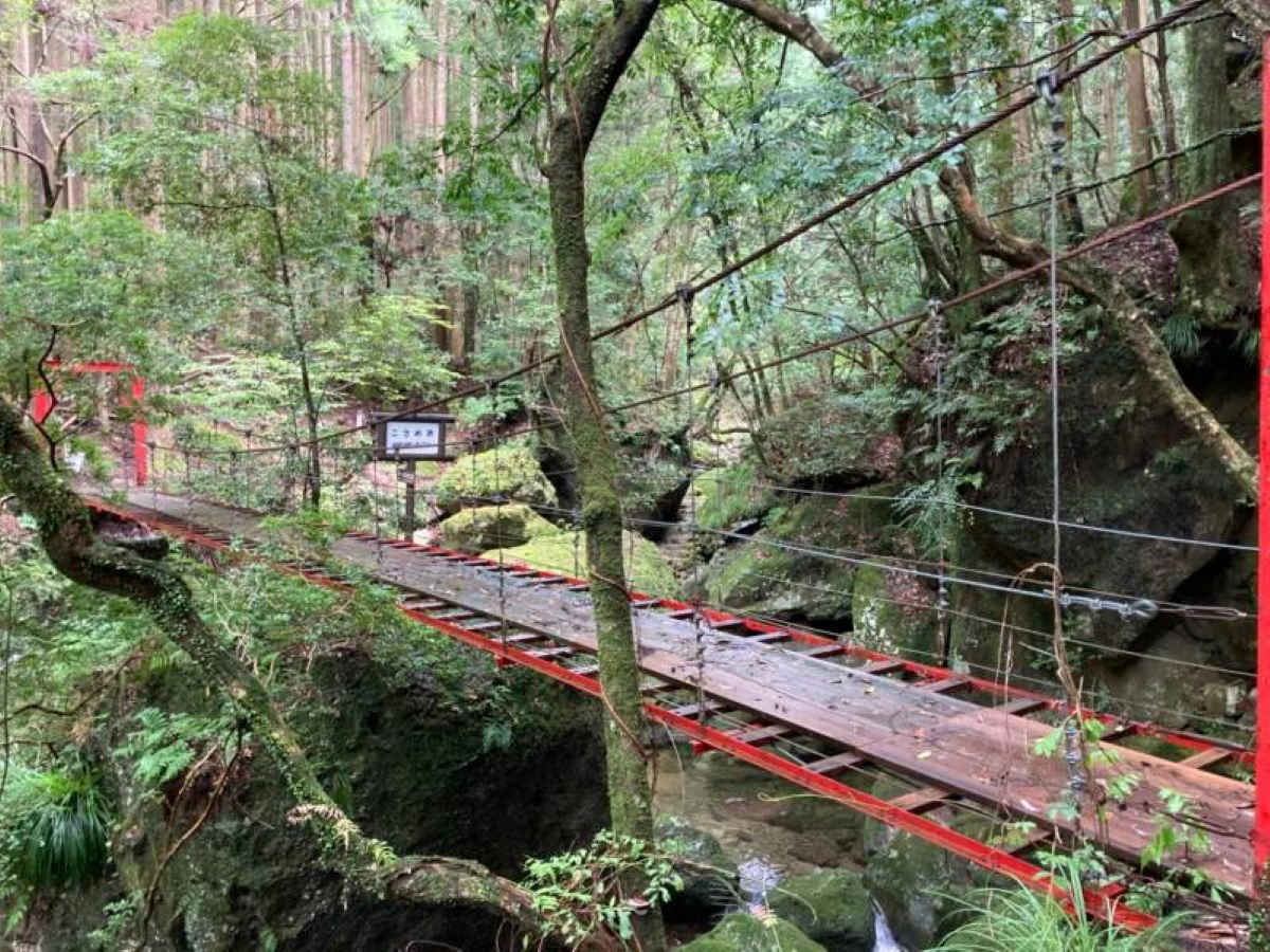 透明感のある水のせせらぎとマイナスイオンを感じながら、苔むした岩々と木々間を進む時間は都会では決して味わうことができない貴重な体験です。山頂へと続く登山道の途中にある大岩からは雄大な自然の絶景をながめることができます。