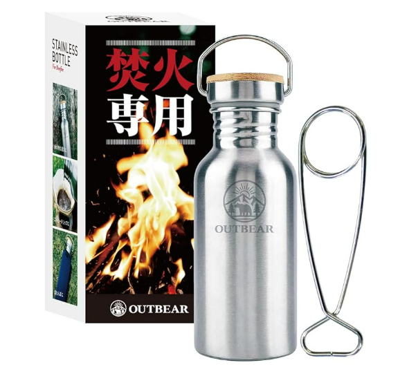 OUTBEARの「直火で使えるステンレスボトル」は、焚き火やガスストーブで直接加熱できるアウトドア向けの万能ボトルです。シングルウォールの無塗装ステンレス構造により直火対応を実現し、ケトルやヤカン代わりとしても活躍します。通常はドリンクボトルとして携帯しながら、キャンプや登山など幅広いシーンで便利に使えます。お湯を注いで本体にカバーをつけて、湯たんぽに早変わりする点がこの商品の魅力です。使い勝手とアウトドアらしいデザイン性も兼ね備えています。
